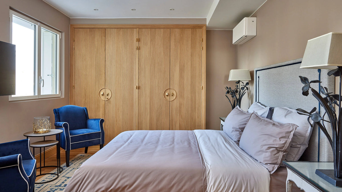 All three bedrooms offer a sea view. Here too, the wall colors were custom-created to ensure the rooms perfectly blend with their external environment.