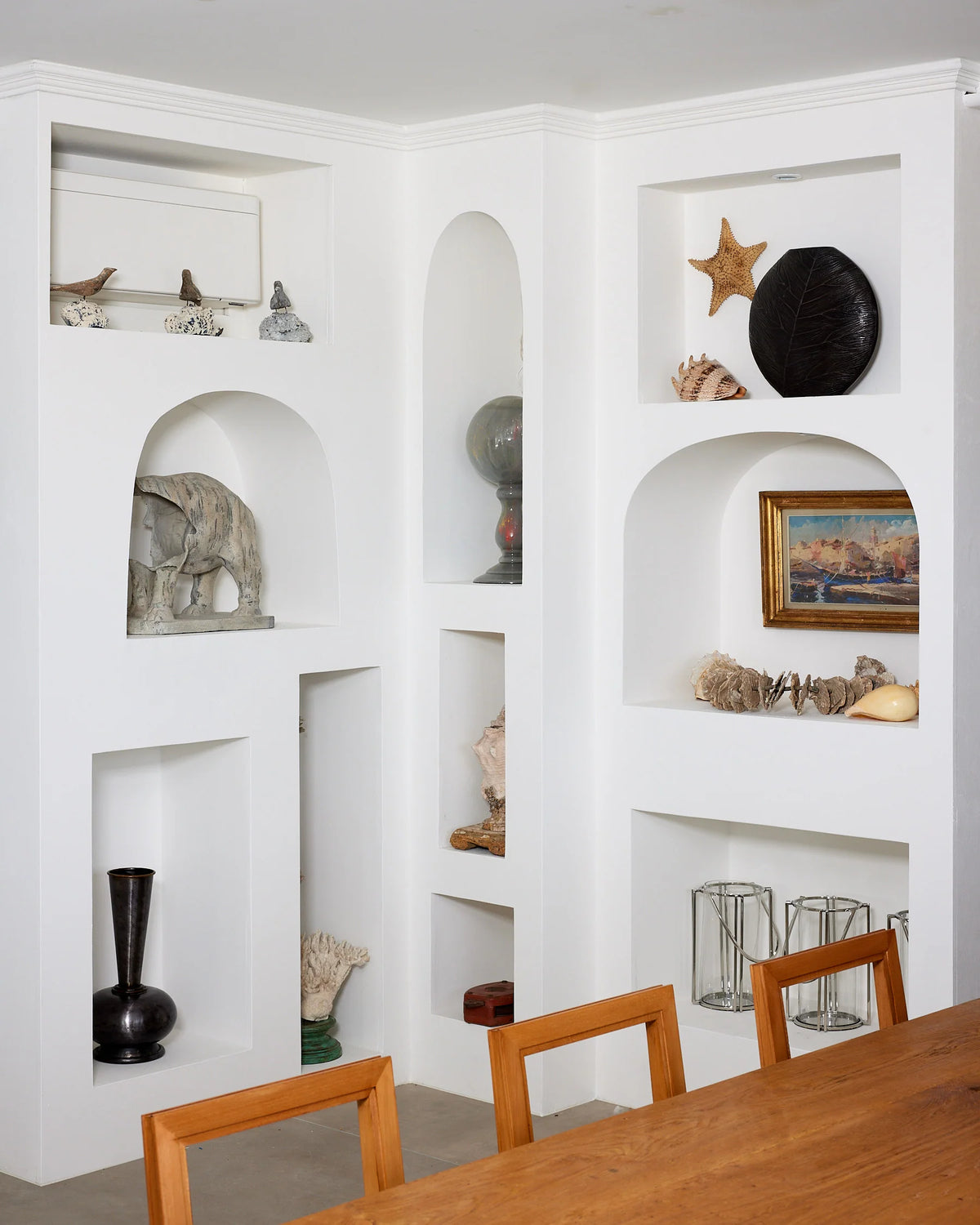 In the corner, we took advantage of the two walls to structure the space and create niches of different sizes and configurations.