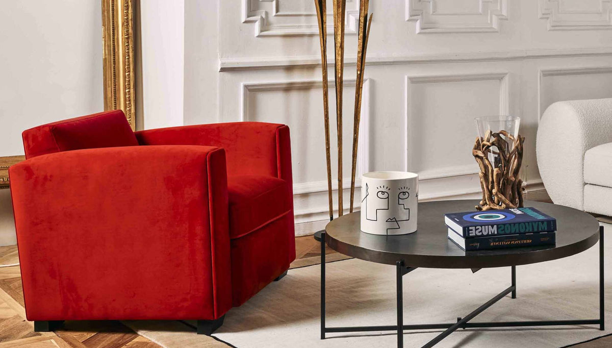 Like the Chaillot armchair, the Mandel armchair is part of the new generation of Mis en Demeure armchair. This club chair is characterized by imposing and slightly rounded armrests, a completely flat back and a comfortable and generous look.