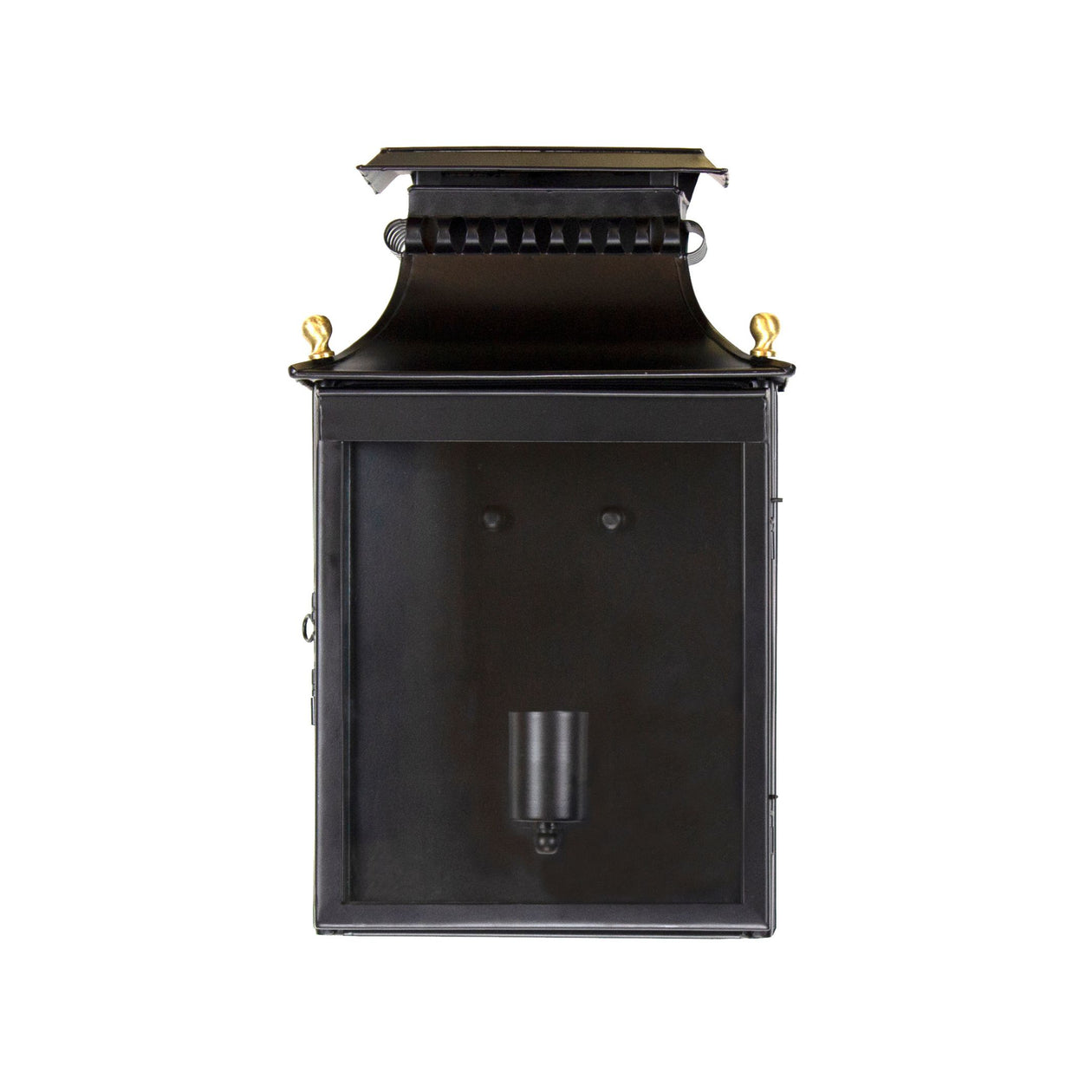 Wrought iron outdoor wall lantern. Particularly suitable for hallways, staircases, terraces, etc.